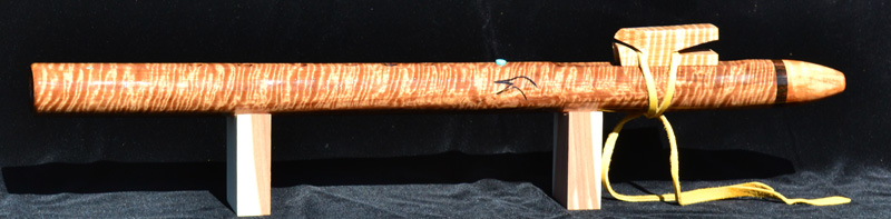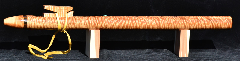 If you're looking for a flute with plenty of volume and lots of character, this little fellow can fill the bill. It measures around 19" long and has a voice that will fill a canyon. I'm not kidding. Of course, she can play softly with a smooth voice if you wish. A showpiece that you'll hate to leave at home when you head out on your favorite "flute hike". The finish is hard as nails and the wood is pretty tough, too, so you will probably be OK taking this little buddy along as a companion with a little care.